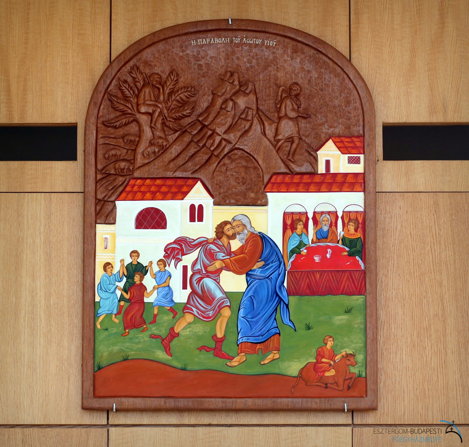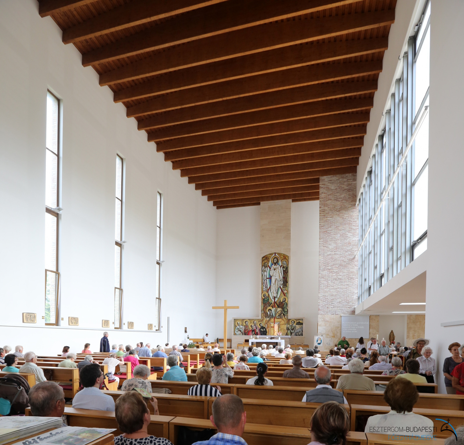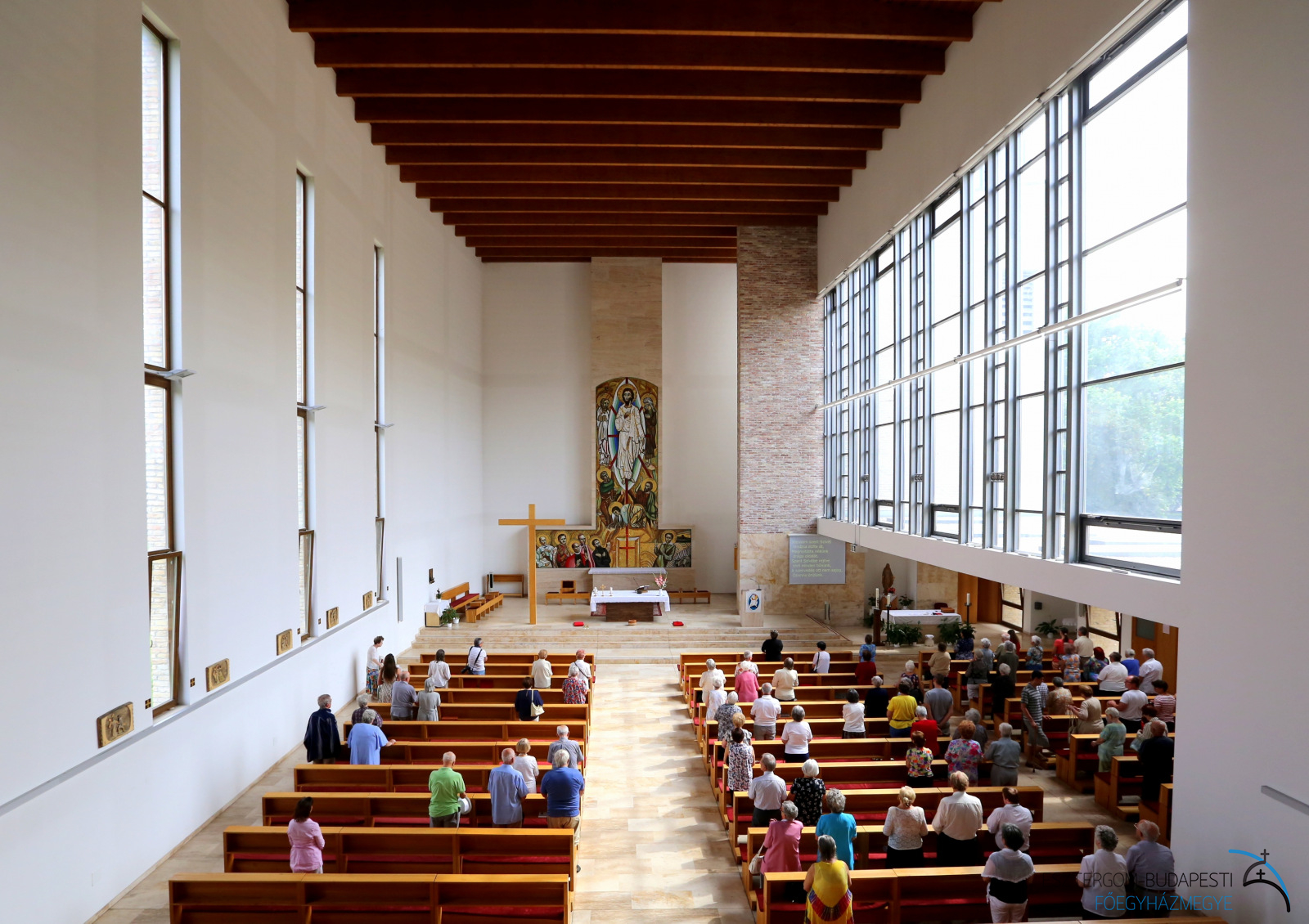 Az oltárba Szent Bonifác és Szent Kelemen egy-egy ereklyéje került, a szentélyben található ereklyetartóban pedig Sára testvér vezeklőövét helyezték el. A mozaik oltárkép, Urunk színeváltozását jeleníti meg Mózessel, Illéssel, valamint Péter, Jakab és János apostolokkal. Az alkotás Boldog Batthyány-Strattmann László, Boldog IV. Károly király, Boldog Romzsa Tódor, Boldog Meszlényi Zoltán, illetve Boldog Salkaházi Sára testvér portréját is ábrázolja. A mozaikot Puskás László görög katolikus pap, festőművész készítette, és 2010 május 9-én Erdő Péter bíboros áldotta meg.